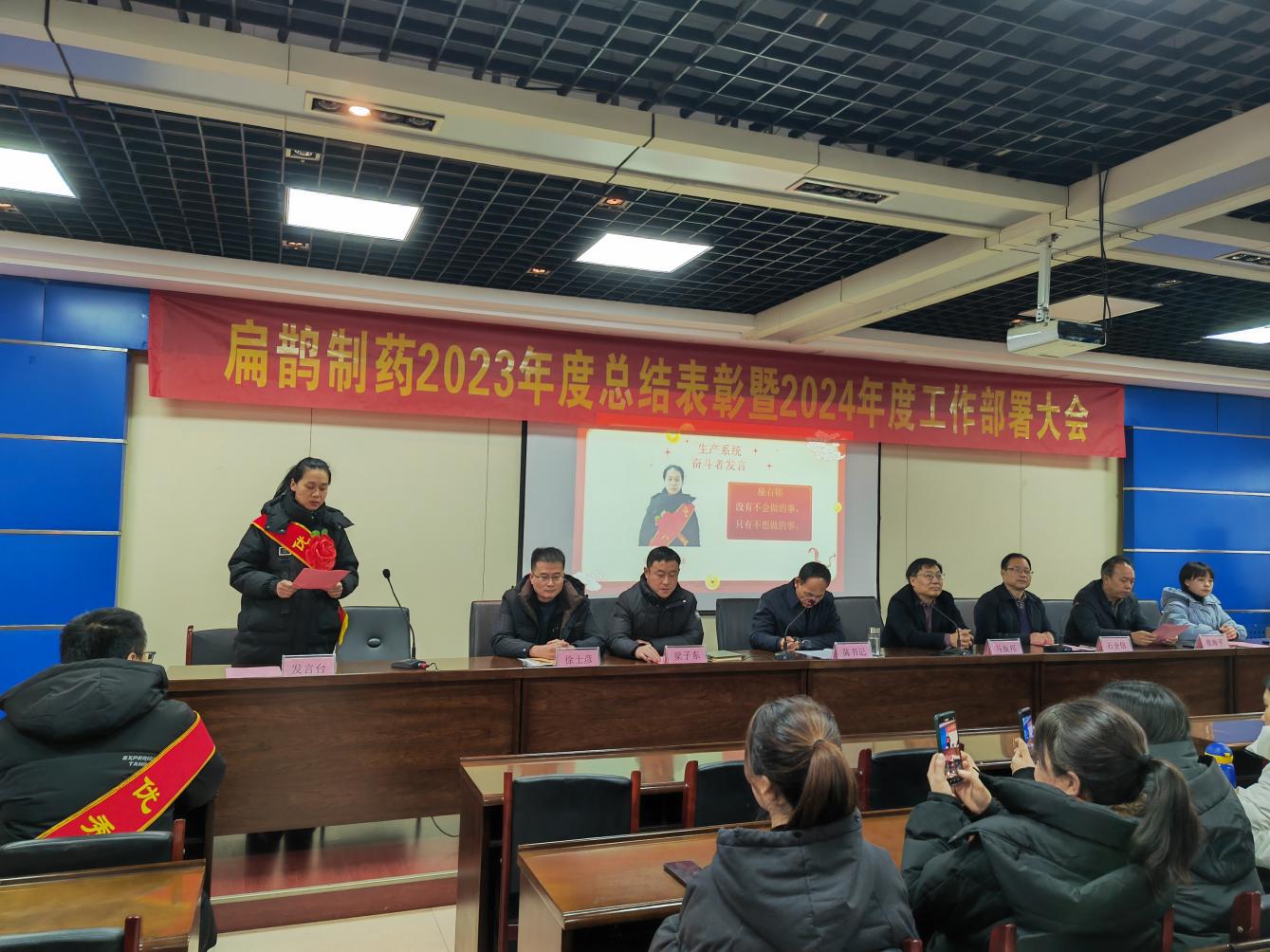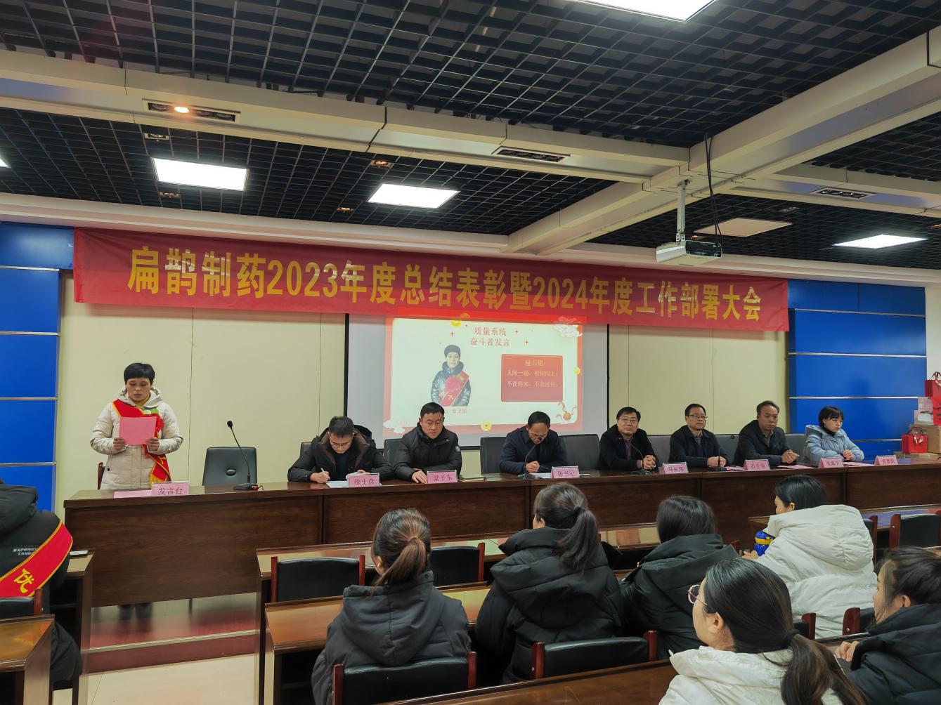 2024年2月6日上午8點28分,河北扁鵲制藥2023年度工作總結表彰暨2024年工作部署大會在一片火熱吉祥的氣氛中隆重召開。公司全體高層參加會議。