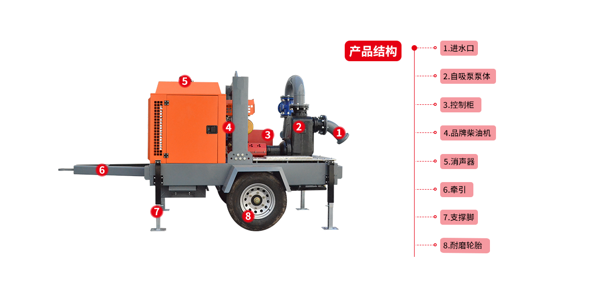 6)該泵還可以與移動(dòng)搶險(xiǎn)車進(jìn)行配套,以達(dá)到臨時(shí)排澇抗旱搶險(xiǎn)的目的。